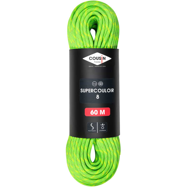 Adaptée à l’escalade en grande voie rocheuse, en glace ou en alpinisme, la SUPERCOULOIR 8.0 de Cousin est une corde à double et jumelée de 8,0 mm de diamètre.
