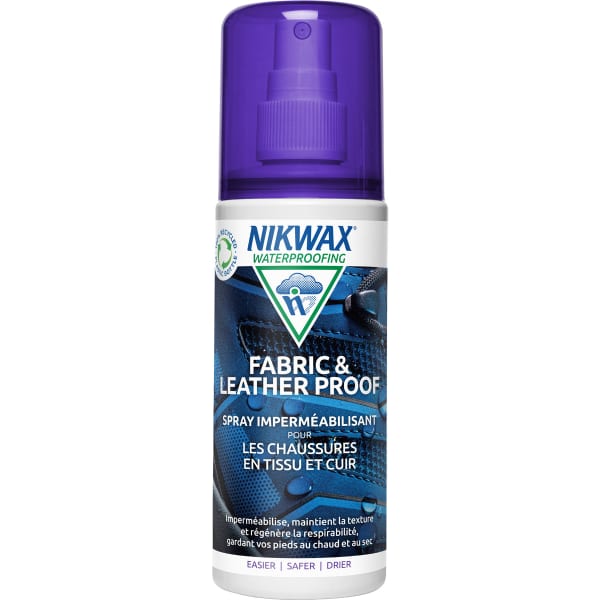 Le FABRIC & LEATHER PROOF 125ML proposé par Nikwax est un imperméabilisant pour les chaussures en tissu et cuir telles que les chaussures de marche légères, d’entraînement et de randonnée.