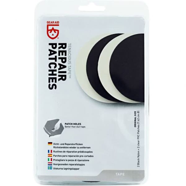 GEAR AID NYLON/PVC TENACIOUS TAPE PATCHS zijn reparatie patches.