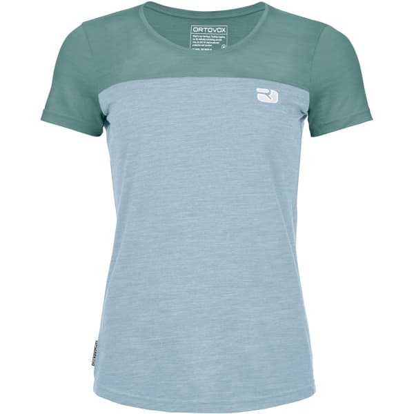 Idéal pour profiter des chaudes journées d'été en montagne, le 150 COOL LOGO W d'ORTOVOX est un tee-shirt à manches courtes pour femme durablement rafraîchissant.