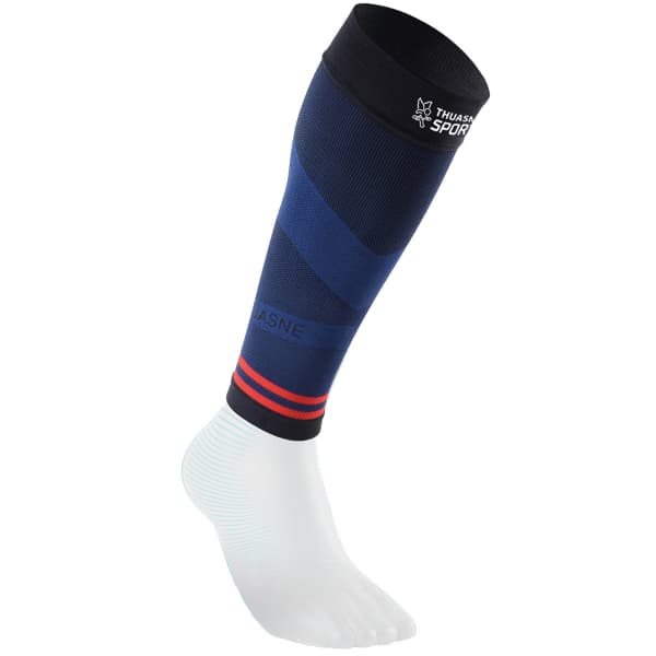 Ce modèle se porte pendant le sport afin de stimuler le retour veineux des jambes et d'améliorer l'oxygénation de vos muscles. La compression dégressive, de la cheville au genou, contribue quant à elle à la réduction des crampes, des traumatismes et des courbatures pendant et après vos entraînements ou vos courses officielles. Les fibres utilisées apportent un grand niveau de confort, comme les fils de trame NILIT® Aquarius pour l'évacuation de l'humidité et les fils recyclés Polygiène® antibactériens et anti-odeurs.